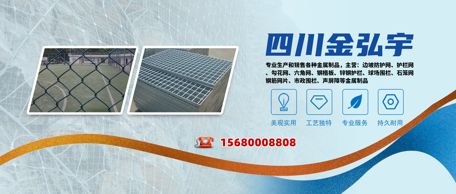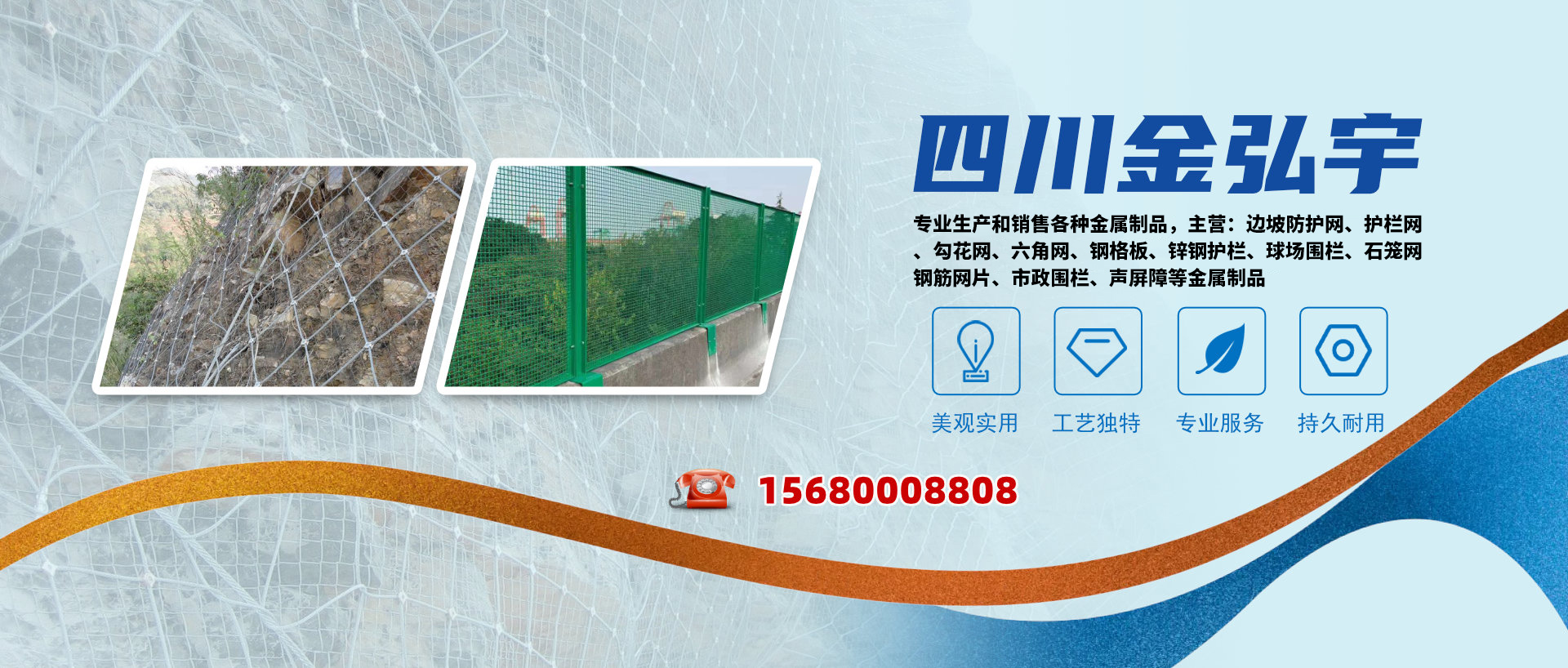 四川金弘宇金屬制品有限公司是一家專(zhuān)業(yè)生產(chǎn)和銷(xiāo)售各種金屬制品的公司。自成立以來(lái),我們一直為客戶(hù)提供高品質(zhì)、高性能的邊坡防護(hù)網(wǎng)、護(hù)欄網(wǎng)、勾花網(wǎng)、六角網(wǎng)、鋼格板、鋅鋼護(hù)欄、球場(chǎng)圍欄、石籠網(wǎng)、鋼筋網(wǎng)片、市政圍欄、聲屏障等產(chǎn)品。這些產(chǎn)品以其好的性能和持久耐用性,贏(yíng)得了廣大用戶(hù)的信賴(lài)和好評(píng)。 我們的邊坡防護(hù)網(wǎng)采用了具有極強(qiáng)的抗拉性和柔韌性,能夠在各種復(fù)雜的地形條件下有效地保護(hù)邊坡的穩(wěn)定。同時(shí),我們的護(hù)欄產(chǎn)品,都以美觀(guān)、實(shí)用、耐用而著稱(chēng)。 我們的勾花網(wǎng)和六角網(wǎng)以其獨(dú)特的編織...